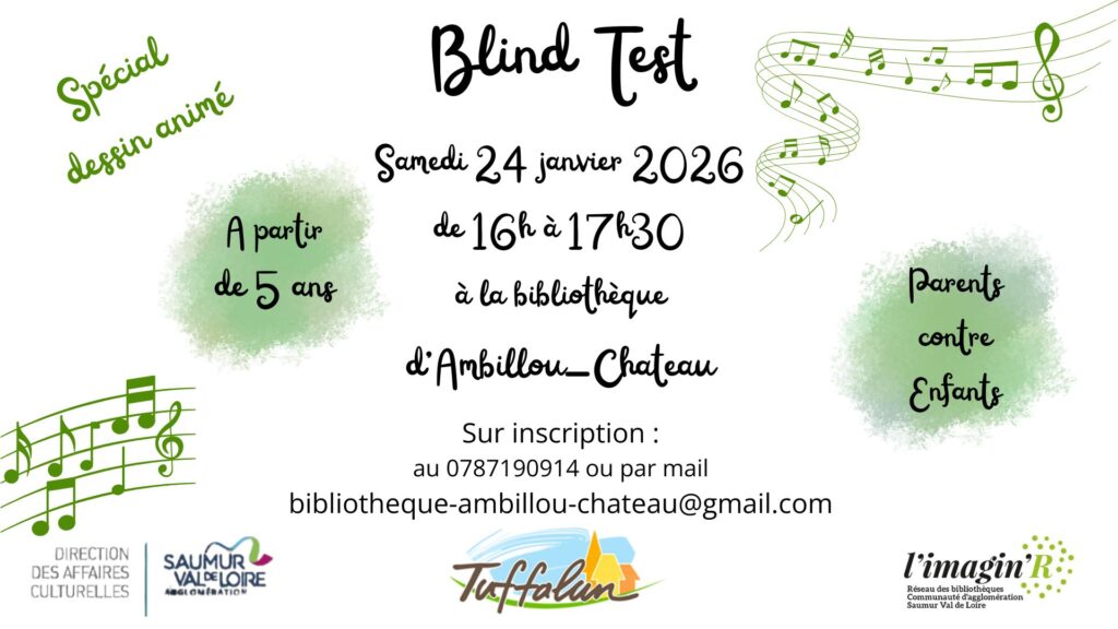 La bibliothèque d’Ambillou Château organise un jeu musical qui consiste à écouter une partie de chanson et à en deviner le titre ou l’interprète.